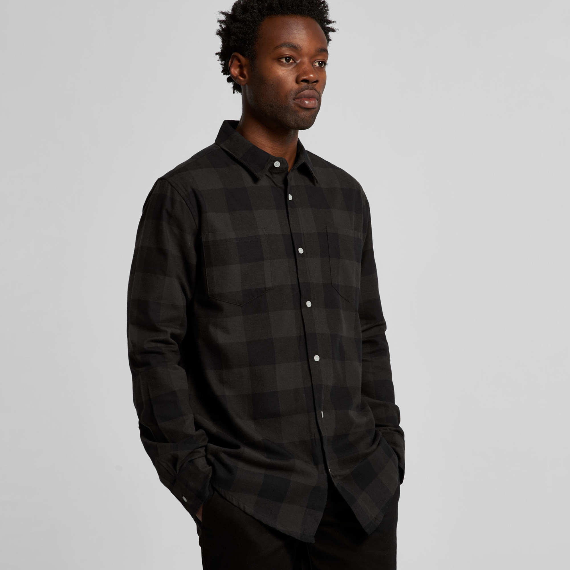 Check design, double chest pockets, Long sleeve button-up shirt,