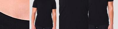 Neck ribbing, side seamed, shoulder to shoulder tape, double needle hems, preshrunk to minimise shrinkage