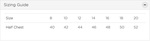 | Size | 8 | 10 | 12 | 14 | 16 | 18 | 20 | 22 |