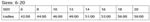 | Size | 6 | 8 | 10 | 12 | 14 | 16 | 18 | 20 |